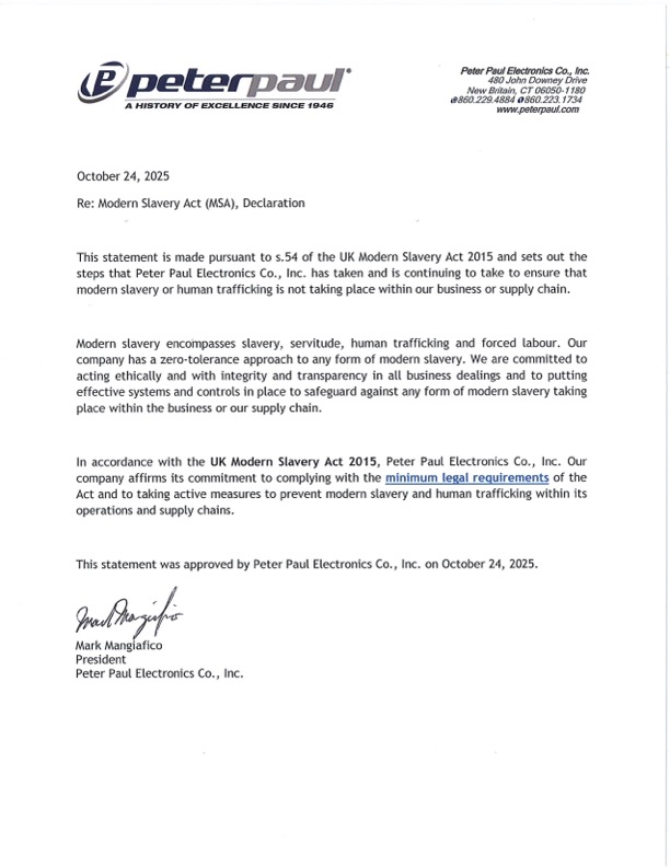 Certification Thumbnail: Certification PDF: PeterPaul MSA Declaration Rev 10-24-25.pdfCertification Category: OTHER