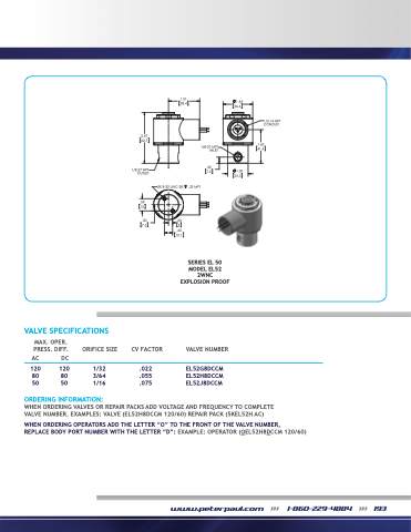 WHEN ORDERING VALVES OR REPAIR PACKS ADD VOLTAGE AND FREQUENCY TO COMPLETE VALVE NUMBER. EXAMPLES: VALVE (EL52H8DCCM 120/60) REPAIR PACK (5KEL52H AC)