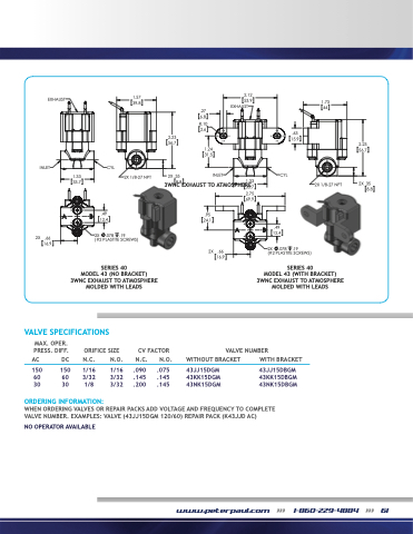 WHEN ORDERING VALVES OR REPAIR PACKS ADD VOLTAGE AND FREQUENCY TO COMPLETE VALVE NUMBER. EXAMPLES: VALVE (43JJ15DGM 120/60) REPAIR PACK (K43JJD AC)